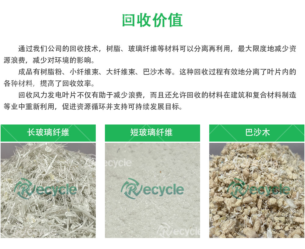 总之,风机叶片回收技术是促进废旧风机叶片、光伏组件等废弃物循环利用的重要手段。我们需要加强研发和创新力度,不断优化和完善这些技术,以实现资源的循环利用和可持续发展。同时,我们也需要加强宣传和教育力度,提高公众对废弃物处理和回收的认识和重视程度,共同推动这一领域的进步和发展。