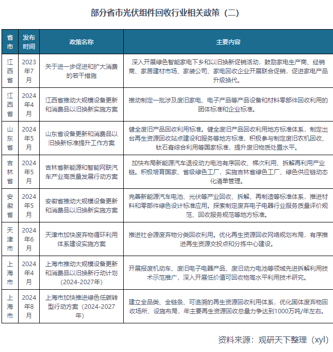 部分省市光伏组件回收行业相关政策!快来看看有你城市吗?